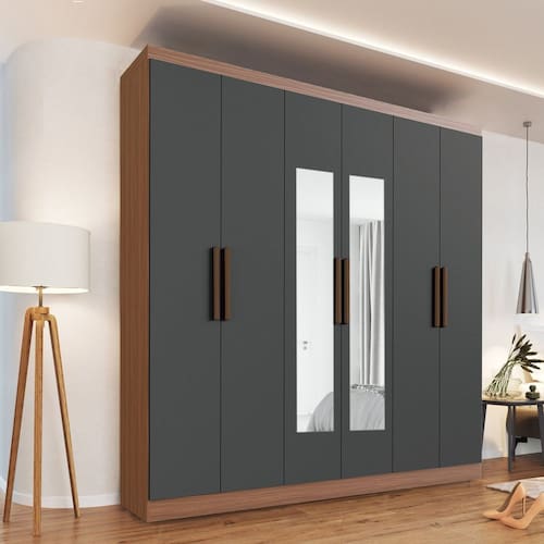 O Guarda-Roupa Mônaco 6 portas é uma ótima opção para quem busca um produto que combine com qualquer ambiente e ainda apresente elegância e praticidade. Além disso, este modelo possui um amplo espaço interno, que conta com cabideiros, calceiros e 3 gavetas.! Acabamento da Prateleira: Pintura Texturizada UV Escala de Brilho da Prateleira: Semi-Brilho Possui Cabideiros: 03 Acabamento da Gaveta: Pintura Texturizada UV Escala de Brilho da Gaveta: Semi-Brilho Possui Organizador de Gaveta: Não Acabamento da Porta: Pintura Texturizada UV Escala de Brilho da Porta: Semi-Brilho Material do Puxador da Porta: MDF Altura do Espelho: 160 cm Ambiente Principal: Quarto codigo_ean: 7900288057792 Complexidade da Montagem: Baixa: pode ser montado por uma pessoa sozinha Cor: Nogueira / Grafite Cor da Porta: Branco Cor do Produto: Nogueira / Grafite Cor do Puxador: Marrom Cor Interna: Linho Escala de Brilho: Semi-Brilho Espessura da Estrutura (mm): 15 mm Espessura das Portas (mm): 15 mm Espessura das Prateleiras (mm): 15 mm Espessura do Espelho: 3 mm Espessura do Fundo (mm): 3 mm Espessura do Fundo das Gavetas (mm): 1,5 mm Fita Integrada: Sim Formato do Espelho: Retangular Gaveta com Chave: Não Guarda-Roupa Suporta Até (kg): 40 kg Itens Inclusos: 1 Guarda Roupa, 1 Kit de Ferragens e 1 Manual de Montagem Largura do Espelho: 26,5 cm Linha ou Coleção: Édez Manual de Montagem e Instalação: https://product-hub-prd.madeiramadeira.com.br/975599/documents/c7a18391-d6fe-46a7-b59d-b1f5c91888872bbab5d1000807manualph1127.pdf Marca: Edez Material da Gaveta: MDP Material da Porta: MDP Material da Prateleira: MDP Material Principal: MDP modular: Não Necessita Montagem: Sim Nicho com Cabideiro: Sim Origem do Produto: Nacional Peso: 122,265 kg Peso Máximo por Gaveta: 5 kg Peso Máximo por Prateleira: 5 kg Possui Calceiros: Não Possui Capelinha: Não Possui Espaço para Vestidos Longos: Não Possui Espelho: Sim Possui Espelho Interno: Não Possui Ganchos: Não Possui Painel de TV: Não Possui Penteadeira: Não Possui Pés: Não Possui Portas: Sim Possui Prateleiras: Sim Possui Sapateira: Não Quantidade de Cabideiros: 03 Cabideiros Quantidade de Espelho: 02 Espelhos com Tamanhos Iguais Quantidade de Gavetas: 03 Gavetas Quantidade de Portas com Espelhos: 2 Portas com Espelho Quantidade de Prateleiras: 07 Prateleiras Recomendações de Uso, Manutenção e Limpeza: Recomenda-se a utilização de pano seco. Sistema de Montagem: Minifix e parafuso Suporta Até (kg): 40 kg Tipo de Corrediça da Gaveta: Metálica Simples Tipo de Dobradiça/Corrediça da Porta: Metálica Tipo de Fixação do Espelho: Fita Dupla Face Tipo de Gaveta: Interna Tipo de Guarda-Roupa: Casal Tipo de Puxador da Gaveta: Não Possui Tipo de Puxador da Porta: Externo