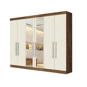 O Roupeiro Alba une comodidade, espaço e beleza em um só produto. Produzido em 100 mdf, possui 6 portas de bater e 4 gavetas com corrediças telescópicas que permitem deslizar suave, abertura total e maior suporte de peso; costas parafusadas que aumenta a resistência do móvel. Este produto conta ainda com pintura verniz uv que da um lindo acabamento e puxadores em alumínio. é ideal para complementar a decoração de seu dormitório. Características Material 100 mdf 6 Portas 4 Gavetas 5 Prateleiras Espelho 2 Cabideiros em Alumínio Corrediças telescópicasDimensões: Altura: 237cm Largura: 245cm Profundidade: 55,8cm Peso 201,70kgRecomendações do fornecedor: Este produto deve ser limpo com pano macio e seco. Não utilize produtos abrasivos como álcool e detergente, assim como esponjas rígidas ou palha de aço. Proteja a superfície do móvel de objetos que transmitam calor ou umidade.Garantia do fornecedor: 3 meses.