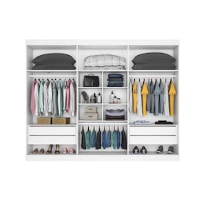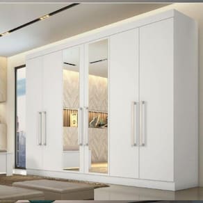 O Roupeiro Alba une comodidade, espaço e beleza em um só produto. Produzido em 100 MDF, possui 6 portas de bater e 4 gavetas com corrediças telescópicas que permitem deslizar suave, abertura total e maior suporte de peso; costas parafusadas que aumenta a resistência do móvel. Este produto conta ainda com pintura verniz UV que da um lindo acabamento e puxadores em alumínio. É ideal para complementar a decoração de seu dormitório.