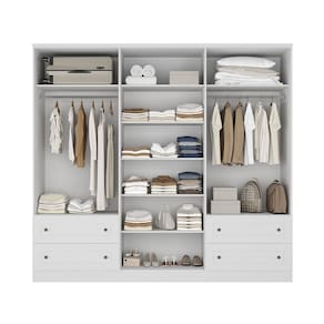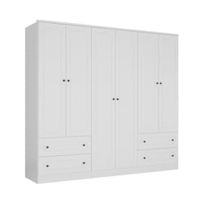 Guarda Roupa 100% MDF, Modelo FORT. Pintura fosca com verniz de alta resistencia, acessorios em aluminio e acabamento de excelente qualidade. Sao 6 portas de bater, 4 gavetas externas onde se utiliza corrediças metalicas telescopicas que proporcionam melhor utilização e abertura das gavetas. As portas são usinadas o que da ao produto um visual moderno e sofisticado. Perfeito para dormitorios de casal ou solteiro. Cor branca. Acabamento da Prateleira: Pintura UV Escala de Brilho da Prateleira: Fosco Possui Cabideiros: Sim Acabamento da Gaveta: Pintura UV Escala de Brilho da Gaveta: Fosco Material do Puxador da Gaveta: PVC Possui Organizador de Gaveta: Não Acabamento da Porta: Pintura UV Escala de Brilho da Porta: Fosco Ambiente Principal: Quarto codigo_ean: 7900288096500 Complexidade da Montagem: Média: pode ser montado por mais de uma pessoa e/ou necessite de maior conhecimento para montagem Cor: Branco Cor da Porta: Branco Cor do Produto: branco Cor do Puxador: Preto Cor Interna: branco Escala de Brilho: Fosco Espessura da Estrutura (mm): 15 mm Espessura das Portas (mm): 15 mm Espessura das Prateleiras (mm): 15 mm Espessura do Fundo (mm): 3 mm Espessura do Fundo das Gavetas (mm): 3 mm Gaveta com Chave: Não Itens Inclusos: roupeiro completo + manual de montagem + kit de ferragem Linha ou Coleção: FORT Manual de Montagem e Instalação: https://product-hub-prd.madeiramadeira.com.br/980941/documents/901e48f9-1aaa-4619-acc1-ca5d17db82a42742192301317418708344892.pdf Marca: Mambel Material da Gaveta: MDF Material da Porta: MDF Material da Prateleira: MDF Material Principal: MDF modular: Não Necessita Montagem: Sim Origem do Produto: Nacional Peso: 205,45 kg Peso Máximo por Gaveta: 5 kg Peso Máximo por Prateleira: 5 kg Possui Calceiros: Não Possui Espelho: Não Possui Pés: Não Possui Portas: Sim Possui Prateleiras: Sim Produto Montado: Sim Quantidade de Cabideiros: 02 Cabideiros Quantidade de Gavetas: 04 Gavetas Quantidade de Prateleiras: 08 Prateleiras Recomendações de Uso, Manutenção e Limpeza: PANO LIMPO E UMIDO Sistema de Montagem: MINIFIX Tipo de Corrediça da Gaveta: Metálica Telescópica Tipo de Dobradiça/Corrediça da Porta: Metálica Tipo de Gaveta: Externa Tipo de Guarda-Roupa: Casal Tipo de Puxador da Gaveta: Externo Tipo de Puxador da Porta: Externo