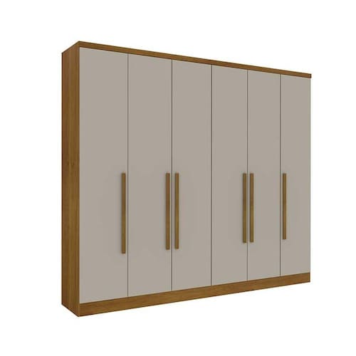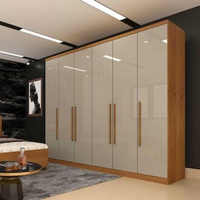 Altura 234 cm Largura 239 cm Profundidade 55 cm Matéria Prima MDP Tipo de Pintura UV Cor Interna Cinamomo Prazo de Garantia 3 meses contra defeitos de fabricação Quantidade de Gavetas 4 Gavetas internas Tipo de Corrediças Telescópicas Quantidade de Cabideiros  2 Material dos Cabideiros Alumínio Quantidade de Portas 6 Forma de Abertura Abrir (bater) Portas com Sistema Reversível  Não Portas com Espelhos Não Quantidade de Prateleiras 12 Puxadores Amadeirados Necessita de Montagem Sim Dica de Montagem Recomendamos que a montagem seja feita por profissional de sua confiança Recomendações de Limpeza Utilizar pano macio, seco ou ligeiramente umedecido com água Informações Os objetos que ambientam as fotos não acompanham o produto