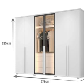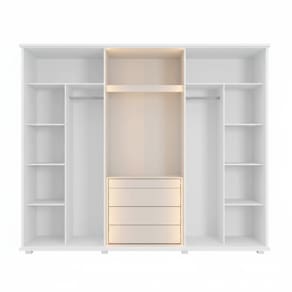 Desfrute de 6 portas, 5 gavetas com corrediças telescópicas para abertura suave, 5 cabideiros em alumínio e 8 nichos internos para organização impecável. Uma prateleira adicional e uma gaveta organizadora complementam o interior, que possui acabamento na cor do produto. O grande diferencial é a Iluminação LED interna, que proporciona visibilidade e sofisticação, facilitando a escolha de suas roupas. Puxadores em MDF e 10 pés elevam o mó Acabamento da Prateleira: Pintura Texturizada UV Escala de Brilho da Prateleira: Fosco Possui Cabideiros: Sim Acabamento da Gaveta: Pintura Texturizada UV Escala de Brilho da Gaveta: Fosco Possui Organizador de Gaveta: Sim Acabamento da Porta: Pintura UV Escala de Brilho da Porta: Fosco Material do Puxador da Porta: MDF Acabamento dos Pés: Pintura Altura dos Pés: 10 cm Altura Máxima dos Pés: 10.0000 Ambiente Principal: Quarto codigo_ean: 7900288267207 Complexidade da Montagem: Alta: deve ser montado por um montador especializado Cor: Branco Cor da Porta: Marrom Cor do Produto: Branco Cor do Puxador: Marrom Cor Flex: Não Cor Interna: Branco Escala de Brilho: Semi-Brilho Espessura da Estrutura (mm): 12 mm Espessura das Portas (mm): 15 mm Espessura das Prateleiras (mm): 12 mm Espessura do Fundo (mm): 3 mm Espessura do Fundo das Gavetas (mm): 3 mm Formato da Janela da Porta: Retângulo Gaveta com Chave: Não Guarda-Roupa Suporta Até (kg): 200 kg Informações Complementares: Seguir as Orientações do Manual de Uso e Montagem! Itens Inclusos: 1 Guarda-Roupa e Kit Ferragens Linha ou Coleção: Bélgica Manual de Montagem e Instalação: https://product-hub-prd.madeiramadeira.com.br/642900962/documents/a1f9560f-895d-4a55-bacb-5dc62a321b2a3273325365917604712754978.pdf Marca: RV Móveis Material da Gaveta: MDP Material da Porta: MDP/Vidro Material da Prateleira: MDP Material dos Pés: PVC Material Principal: MDP modular: Não Montagem Flex: Não Necessita Montagem: Sim Nicho com Cabideiro: Sim Origem do Produto: Nacional Peso: 223,5 kg Peso Máximo por Gaveta: 5 kg Peso Máximo por Prateleira: 5 kg Porta Janelada: Sim Possui Calceiros: 02 Possui Capelinha: Não Possui Espaço para Vestidos Longos: Sim Possui Espelho: Não Possui Espelho Interno: Não Possui Ganchos: Não Possui iluminação: Sim Possui Nichos: Sim Possui Painel de TV: Não Possui Penteadeira: Não Possui Pés: 08 Possui Portas: Sim Possui Prateleiras: Sim Possui Sapateira: Não Produto Montado: Sim Quantidade de Cabideiros: 03 Cabideiros Quantidade de Gavetas: 04 Gavetas Quantidade de Prateleiras: 09 Prateleiras Recomendações de Uso, Manutenção e Limpeza: Seguir as Orientações do Manual de Uso e Montagem! Sapatas Niveladoras: Não Sistema de Montagem: Parafusos, Cavilhas, Giro Fix e Prego Suporta Até (kg): 200 kg Tipo de Corrediça da Gaveta: Metálica Telescópica Tipo de Dobradiça/Corrediça da Porta: Metálica Tipo de Gaveta: Interna Tipo de Guarda-Roupa: Casal Tipo de Puxador da Gaveta: Não Possui Tipo de Puxador da Porta: Externo