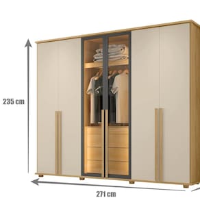 Transforme seu quarto com o Roupeiro Bélgica Cinamomo: elegância e organização em um só móvel. Com design moderno e funcional, é a solução ideal para otimizar seu espaço. Suas dimensões de 2,35m (A) x 2,71m (L) x 0,58m (P) oferecem amplo espaço interno, perfeito para casais. A estrutura robusta com moldura de 2,5cm garante durabilidade e acabamento superior.
