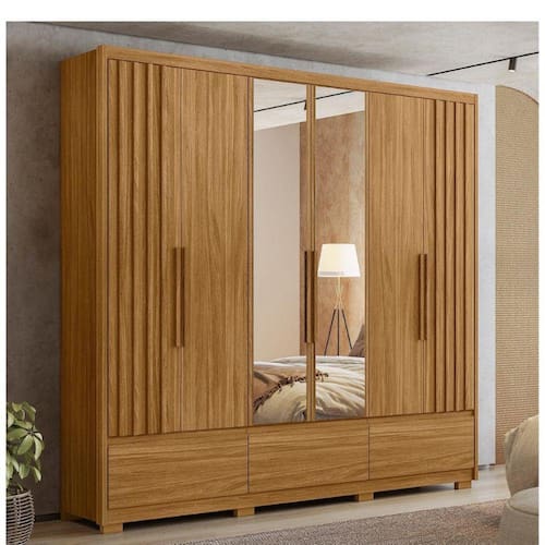 O Guarda Roupa Casal Amazonas é ideal para quem busca modernidade. Com excelente divisão interna contribui para uma melhor organização. Contém 6 portas sendo 2 com detalhes ripados e 2 com espelho, além de 5 gavetas para o melhor armazenamento de roupas e pertences.