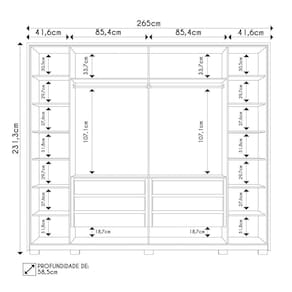 - Prateleiras removíveis e espaço para sapatos.