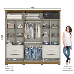 O Roupeiro Andréas é sinônimo de modernidade, elegância e praticidade no dia a dia, apresenta um design moderno e harmônico. Produzido em MDP. Conta com 6 gavetas com corrediças telescópicas, Gavetas com usinagem para pega, Cabideiro e calceiro em alumínio, Puxadores no formato de molduras com soft para pega, Chapéu com acabamento soft, Interno com divisão em colmeia e Pés em ABS. É Ideal para agregar bom gosto ao ambiente e organização a sua rotina!