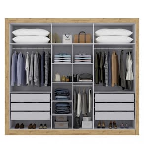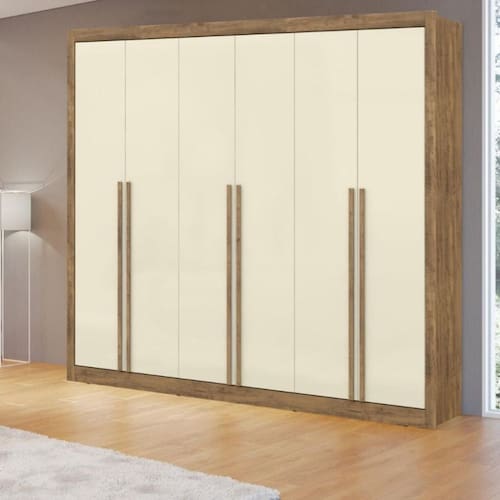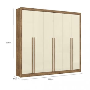 Características: 6 Portas 6 Gavetas Corrediças telescópicas 2 cabideiros em alumínio 1 Calceiro em alumínio Puxadores em MDF 1150mm Acabamento interno no padrão tonalidade em linho; Prateleiras suportam peso de até 6kg Gavetas suportam peso de até 3kg