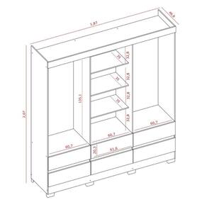 Medindo 207 cm de altura, 187 cm de largura e 46,8 cm de profundidade, é perfeito para quem precisa de um móvel compacto, mas sem abrir mão de espaço interno.