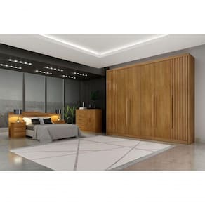 O Guarda Roupa Himalaia Ripado vai proporcionar um ambiente aconchegante mantendo um visual sofisticado e funcional. Composto por peças de extrema qualidade e com excelente espaço interno bem distribuídos, oferecendo máxima organização de forma prática. Fabricado em 100% MDF, 6 portas de bater com detalhe ripado, possui 6 gavetas com corrediças telescópicas, puxadores com acabamento amadeirado e cabideiros em alumínio. Amplo espaço interno. Aproveite!