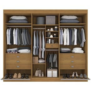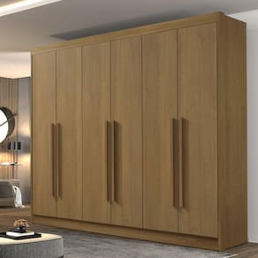 O guarda roupas Zeus Plus é um móvel conceitual e imponente, ele impressiona por sua grandiosidade, pelos espaços bem distribuídos e os detalhes pensados para atender as mais variadas necessidades do usuário, são eles: Produzido 100% MDF, puxadores em mdf alongados com design moderno e funcional, portas com amortecedor nas dobradiças Slow motion, espaço amplo e nichos porta acessórios (gaveta com chave), sapateiras e gavetas com corrediças telescópicas, costas e fundo de gavetas em mdf de 6 mm espessura. Acabamento da Prateleira: Pintura Texturizada UV Escala de Brilho da Prateleira: Brilhante Possui Cabideiros: 03 Acabamento da Gaveta: Pintura Texturizada UV Escala de Brilho da Gaveta: Semi-Brilho Material do Puxador da Gaveta: Poliestireno Possui Organizador de Gaveta: Não Acabamento da Porta: Pintura Texturizada UV Escala de Brilho da Porta: Brilhante Material do Puxador da Porta: MDF Ambiente Principal: Quarto Complexidade da Montagem: Média: pode ser montado por mais de uma pessoa e/ou necessite de maior conhecimento para montagem Cor: Cinamomo Cor do Produto: Cinamomo Escala de Brilho: Fosco Gaveta com Chave: Sim Itens Inclusos: 1 Guarda Roupa, Kit Ferragens e Manual de Montagem Linha ou Coleção: Zero Plus Manual de Montagem e Instalação: https://cdn2.madeiramadeira.com.br/atributo/d-doro-moveis/1203874-7908542300554-1.pdf Material da Gaveta: MDF Material da Porta: MDF Material da Prateleira: MDF Material Principal: MDF Necessita Montagem: Sim Origem do Produto: Nacional Peso: 311 Peso Máximo por Gaveta: 5 Peso Máximo por Prateleira: 5 Possui Calceiros: 01 Possui Espaço para Vestidos Longos: Sim Possui Espelho: Não Possui Espelho Interno: Não Possui Painel de TV: Não Possui Pés: Não Possui Portas: 06 Possui Prateleiras: 12 Possui Sapateira: Sim Recomendações de Uso, Manutenção e Limpeza: Pano levemente umedecido e pano seco. Não utilizar produtos de limpeza Sistema de Montagem: parafuso / cavilhas Tipo de Corrediça da Gaveta: Metálica Telescópica Tipo de Dobradiça/Corrediça da Porta: Aço Tipo de Gaveta: Interna Tipo de Guarda-Roupa: Casal Tipo de Puxador da Gaveta: Externo Tipo de Puxador da Porta: Externo