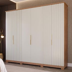 Características: Estrutura em MDF Acabamento em pintura UV 6 Portas Dobradiças Slow Motion 6 Gavetas Corrediças telescópicas Cabideiros em alumínio com suporte metálico Puxadores em alumínio Pés em ABS
