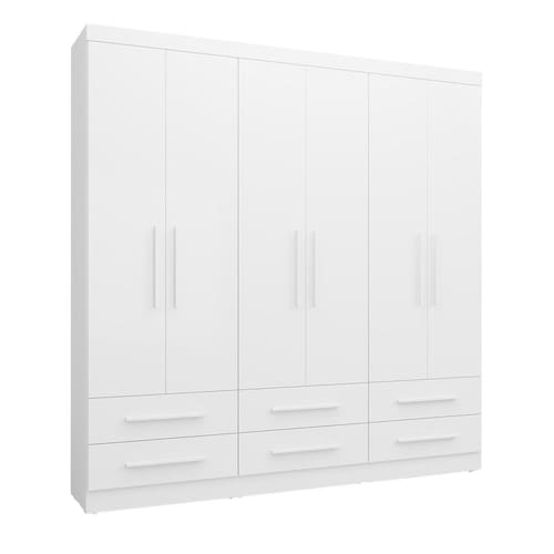 Com excelente acabamento, os guarda-roupas da Batrol Móveis possuem materiais que permitem que as peças tenham encaixes mais suaves, o que resulta em um design mais interessante e sofisticado. Fabricados em MDP, possuem chapas homogêneas, resistentes e fáceis de montar. Acabamento da Prateleira: Pintura UV Escala de Brilho da Prateleira: Fosco Possui Cabideiros: Sim Acabamento da Gaveta: Pintura UV Material do Puxador da Gaveta: MDF Possui Organizador de Gaveta: Não Acabamento da Porta: Pintura UV Escala de Brilho da Porta: Fosco Material do Puxador da Porta: MDF Ambiente Principal: Quarto codigo_ean: 7900288192714 Complexidade da Montagem: Alta: deve ser montado por um montador especializado Cor: Branco Cor do Produto: Branco Escala de Brilho: Brilhante Espessura da Estrutura (mm): 12 mm Espessura das Portas (mm): 15 mm Espessura das Prateleiras (mm): 12 mm Espessura do Fundo (mm): 3 mm Espessura do Fundo das Gavetas (mm): 3 mm Itens Inclusos: 1 Guarda-Roupa, Kit Ferragens e Manual de Montagem Linha ou Coleção: Majestic Manual de Montagem e Instalação: https://product-hub-prd.madeiramadeira.com.br/550236586/documents/c1336ac4-0272-4fc6-9869-38a079cca5913013263464117507063265522.pdf Marca: Batrol Móveis Material da Gaveta: MDP Material da Porta: MDP Material da Prateleira: MDP Material Principal: MDP modular: Não Necessita Montagem: Sim Origem do Produto: Nacional Peso: 162 kg Peso Máximo por Gaveta: 5 kg Peso Máximo por Prateleira: 2 kg Possui Calceiros: Não Possui Espelho: Não Possui Pés: Não Possui Portas: Sim Possui Prateleiras: Sim Produto Montado: Sim Quantidade de Cabideiros: 02 Cabideiros Quantidade de Gavetas: 06 Gavetas Quantidade de Prateleiras: 06 Prateleiras Recomendações de Uso, Manutenção e Limpeza: Pano úmido Sistema de Montagem: Parafusos e cavilhas Tipo de Corrediça da Gaveta: Metálica Telescópica Tipo de Dobradiça/Corrediça da Porta: Aço Tipo de Gaveta: Externa Tipo de Guarda-Roupa: Casal Tipo de Puxador da Gaveta: Externo Tipo de Puxador da Porta: Externo