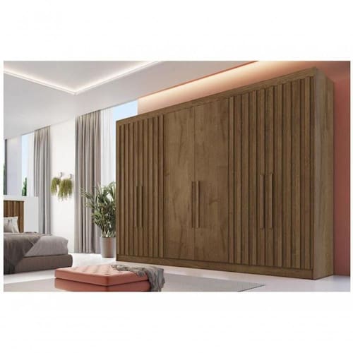 Guarda-roupa Casal 6 Portas 6 Gavetas Móveis Europa Ripado Potente Brauna Informações do ProdutoGuarda-roupa Casal 6 Portas 6 Gavetas Móveis Europa Ripado PotenteO Guarda-Roupa Casal Ripado Potente da Móveis Europa é uma ótima opção para guardar tudo o que você precisa com amplo espaço e organização. Produzido com design moderno e funcional em madeira 100% MDF de alta qualidade, com revestimento verniz UV e acabamento semi-brilho. São 6 portas convencionais com dobradiças metálicas, 6 gavetas internas com puxadores embutidos e 8 nichos para você organizar tranquilamente bolsas, sapatos, acessórios e outros objetos pessoais. Duas das gavetas possuem chave para guardar ítens de valor com segurança. As prateleiras são removíveis e ele ainda conta com compartimento para malas e roupas de cama na parte superior. Produto na cor Brauna.MarcaMóveis EuropaReferência17335178ModeloPotenteLinhaRipadoTamanhoCasalQuantidade de Portas6 PortasTipo de PortaConvencionalQuantidade de Gavetas6 GavetasMaterial da EstruturaMDFEstiloModernoMaterialMDFRevestimentoVerniz UVAcabamentoSemi-brilhoSistema de AberturaDobradiças MetálicasGavetasInternasPeso Suportado por Gaveta5kgPrateleiras3 InternasPeso Suportado por Prateleira5kgQuantidade de Nichos8 NichosComplexidade de MontagemAltaCorBraunaPeso do Produto261kgPeso do Produto com Embalagem270kgDimensões do ProdutoLargura: 237cm Altura: 250,5cm Profundidade: 56cmPrazo de Garantia03 meses de garantia legal.Conteúdo da Embalagem1 Guarda-Roupa
