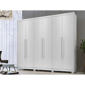 Altura 230 cm Largura 273 cm Profundidade 54 cm Matéria Prima MDP 15 mm Espaço para Sapatos Sim Tipo de Pintura UV Prazo de Garantia 3 meses contra defeitos de fabricação Quantidade de Gavetas 6 Gavetas Tipo de Corrediças Telescópicas Quantidade de Cabideiros 3 Material dos Cabideiros Alumínio Quantidade de Portas 6 Forma de Abertura Abrir Material Puxador Madeirado Portas Dupla Face Não Portas com Espelhos Não Quantidade de Prateleiras 9 Possui Pés Sim Necessita de Montagem Sim Dica de Montagem Recomendamos que a montagem seja feita por profissional de sua confiança Recomendações de Limpeza Utilizar pano macio seco ou ligeiramente umedecido com água Informações Os objetos que ambientam as fotos não acompanham o produto