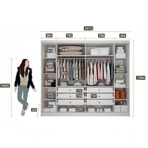 O Guarda Roupa Santoro vai proporcionar um ambiente aconchegante mantendo um visual sofisticado e funcional. Composto por peças de extrema qualidade e com excelente espaço interno bem distribuídos, oferecendo máxima organização de forma prática. Fabricado em 100% MDF, 6 portas de bater, possui 6 gavetas com corrediças telescópicas, puxadores com acabamento amadeirado e cabideiros em alumínio. Amplo espaço interno. Aproveite!