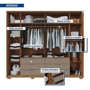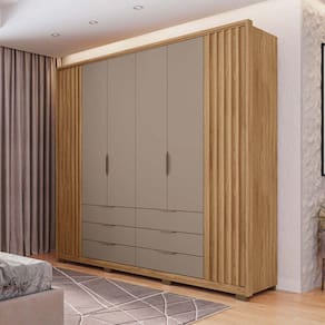 Guarda-Roupa Suburban é uma forma diferente de você montar o seu quarto. Um quarto moderno precisará de um móvel diferenciado, traz a combinação perfeita ótima disposição interna e modernidade, esse móvel faz parte de uma linha de produtos que está disponível no mercado, sendo assim uma linha completa para formar seu ambiente e para total conforto, modernidade e durabilidade, com opções com e sem espelho, a porta central conta com detalhes ripado em MDF que é uma tendência, tornando o móvel moderno, ele é confeccionado em MDP de 15mm e MDF para maior resistência, possui várias repartições para armazenar roupas e objetos, molduras nas portas laterais e centrais em MDF 25 mm. Materiais de 1ª qualidade que respeitam o meio ambiente. Acabamento da Prateleira: Pintura Escala de Brilho da Prateleira: Fosco Possui Cabideiros: 02 Acabamento da Gaveta: Pintura Escala de Brilho da Gaveta: Fosco Material do Puxador da Gaveta: Alumínio Possui Organizador de Gaveta: Não Acabamento da Porta: Pintura Escala de Brilho da Porta: Fosco Material do Puxador da Porta: Alumínio Acabamento dos Pés: Pintura Altura dos Pés: 5 Ambiente Principal: Quarto Complexidade da Montagem: Alta: deve ser montado por um montador especializado Cor: Buriti/Cinza Cor do Produto: Buriti/Cinza Cor Interna: Buriti Escala de Brilho: Fosco Gaveta com Chave: Não Guarda-Roupa Suporta Até (kg): 150 Itens Inclusos: 1 Guarda Roupas, Kit Ferragens e Manual de Montagem Linha ou Coleção: Suburban Manual de Montagem e Instalação: https://cdn2.madeiramadeira.com.br/atributo/caemmun-moveis/1280319-esquema-cx-mxm-ediCAo-a.pdf Material da Gaveta: MDP Material da Porta: MDF/MDP Material da Prateleira: MDP Material dos Pés: ABS Material Principal: MDP Necessita Montagem: Sim Origem do Produto: Nacional Peso: 217.89 Peso Máximo por Gaveta: 5 Peso Máximo por Prateleira: 5 Possui Calceiros: Não Possui Espaço para Vestidos Longos: Não Possui Espelho: Não Possui Espelho Interno: Não Possui Ganchos: Não Possui iluminação: Não Possui Painel de TV: Não Possui Pés: 08 Possui Portas: 06 Possui Prateleiras: 10 Possui Sapateira: Não Recomendações de Uso, Manutenção e Limpeza: Limpar com pano macio levemente umedecido e em seguida pano macio seco, não utilizar produtos abrasivos e/ou a base de solventes. Sapatas Niveladoras: Não Sistema de Montagem: Minifix, cavilhas, parafusos, dispositivos angular Tipo de Corrediça da Gaveta: Metálica Telescópica Tipo de Dobradiça/Corrediça da Porta: Aço Tipo de Gaveta: Externa Tipo de Guarda-Roupa: Casal Tipo de Puxador da Gaveta: Externo Tipo de Puxador da Porta: Externo