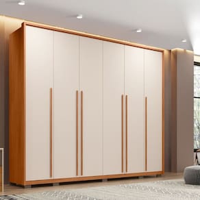 Um quarto moderno precisará de um móvel diferenciado, traz a combinação perfeita de ótima disposição interna e modernidade. Esse móvel faz parte de uma linha de produtos que está disponível no mercado, portas ripadas dando um charme ao móvel, assim temos uma linha completa para formar seu ambiente e para total conforto, modernidade e durabilidade. Possui várias repartições para armazenar roupas e objetos. Materiais de 1ª qualidade que respeitam o meio ambiente. Acabamento da Prateleira: Pintura UV Escala de Brilho da Prateleira: Fosco Possui Cabideiros: Sim Acabamento da Gaveta: Pintura UV Possui Organizador de Gaveta: Não Acabamento da Porta: Pintura UV Escala de Brilho da Porta: Fosco Altura dos Pés: 5 cm Altura Máxima dos Pés: 5.0000 Ambiente Principal: Quarto codigo_ean: 7909903851647 Complexidade da Montagem: Alta: deve ser montado por um montador especializado Cor: Freijó/Off White Cor do Produto: Freijo/Off White Escala de Brilho: Fosco Espessura da Estrutura (mm): 12 mm Espessura das Portas (mm): 15 mm Espessura das Prateleiras (mm): 12 mm Espessura do Fundo (mm): 3 mm Espessura do Fundo das Gavetas (mm): 3 mm Itens Inclusos: 1 Guarda Roupa, Kit ferragens e Manual de Montagem Linha ou Coleção: Suburban Manual de Montagem e Instalação: https://product-hub-prd.madeiramadeira.com.br/922970/documents/7e6612d1-6a69-4b31-ba35-ce3b1d8eee3d2144256559517210450004205.pdf Marca: Caemmun Material da Gaveta: MDF Material da Porta: MDP Material da Prateleira: MDF Material dos Pés: Plástico Material Principal: MDF modular: Não Montagem Flex: Não Necessita Montagem: Sim Origem do Produto: Nacional Peso: 221,1 kg Peso Máximo por Gaveta: 4 kg Peso Máximo por Prateleira: 5 kg Possui Calceiros: Não Possui Espelho: Não Possui Pés: 10 Possui Portas: Sim Possui Prateleiras: Sim Produto Montado: Sim Recomendações de Uso, Manutenção e Limpeza: Limpar com pano macio levemente umedecido e em seguida pano macio seco. Não utilizar produtos abrasivos (lixas, esponjas) e/ou produtos a base de solventes (thinner, aguarrás). Sistema de Montagem: Utiliza-se na montagem do produto sistema de fixação minifix, dobradiças, dispositivos angulares, cavilhas, parafusos, porcas cilindricas, entre outros; Tipo de Corrediça da Gaveta: Metálica Telescópica Tipo de Dobradiça/Corrediça da Porta: Metálica Tipo de Gaveta: Interna Tipo de Guarda-Roupa: Casal Tipo de Puxador da Gaveta: Não Possui Tipo de Puxador da Porta: Externo