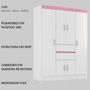 Guarda Roupa Casal 6 Portas 62020 Branco Rosa Flex Demobile