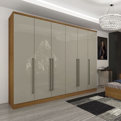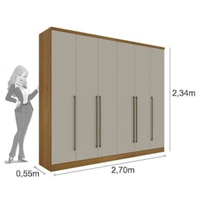O Guarda Roupa 6 portas Sevilla possui design minimalista, destacando os belos puxadores em alumínio. Produzido em MDP, com espaço ele e ela, oito gavetas com corrediças metálicas, puxadores em alumínio de alto acabamento, oito prateleiras independentes, espaço para roupas longas, maleiro amplo, dobradiças 26mm, espelhos e pés opcionais. Acabamento da Prateleira: Pintura Escala de Brilho da Prateleira: Semi-Brilho Possui Cabideiros: 02 Acabamento da Gaveta: Pintura Escala de Brilho da Gaveta: Fosco Material do Puxador da Gaveta: PVC Possui Organizador de Gaveta: Não Acabamento da Porta: Pintura Escala de Brilho da Porta: Brilhante Material do Puxador da Porta: Alumínio Ambiente Principal: Quarto Complexidade da Montagem: Média: pode ser montado por mais de uma pessoa e/ou necessite de maior conhecimento para montagem Cor: Cinamomo/Off White Cor do Produto: Cinamomo/Off White Escala de Brilho: Brilhante Gaveta com Chave: Não Itens Inclusos: 1 Guarda Roupa, Kit Ferragens e Manual de Montagem Linha ou Coleção: Sevilla Manual de Montagem e Instalação: http://cdn2.madeiramadeira.com.br/tecnico/tcil-moveis/12635-esquema-de-montagem-roupeiro-6-portas-sevilla-8-gavetas.pdf Material da Gaveta: MDP Material da Porta: MDP Material da Prateleira: MDP Material Principal: MDP Necessita Montagem: Sim Origem do Produto: Nacional Peso: 215 kg Peso Máximo por Gaveta: 10 kg Peso Máximo por Prateleira: 25 kg Possui Calceiros: 01 Possui Espelho: Não Possui Pés: Não Possui Portas: 06 Possui Prateleiras: 12 Recomendações de Uso, Manutenção e Limpeza: Não colocar o produto em lugar úmido, não arrastar, limpar somente com pano macio e seco, não expor o produto a incidência de luz solar, não colocar peso superior ao indicado. Sistema de Montagem: Parafuso, Cavilha e Prego. Tamanho: Tipo de Corrediça da Gaveta: Metálica Simples Tipo de Dobradiça/Corrediça da Porta: Metálica Tipo de Gaveta: Interna Tipo de Guarda-Roupa: Casal Tipo de Puxador da Gaveta: Externo Tipo de Puxador da Porta: Externo