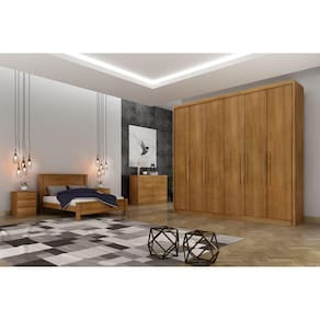 O Guarda Roupa Santoro vai proporcionar um ambiente aconchegante mantendo um visual sofisticado e funcional. Composto por peças de extrema qualidade e com excelente espaço interno bem distribuídos, oferecendo máxima organização de forma prática. Fabricado em 100% MDF, 6 portas de bater, possui 8 gavetas com corrediças telescópicas, puxadores com acabamento amadeirado e cabideiros em alumínio. Amplo espaço interno. Aproveite!