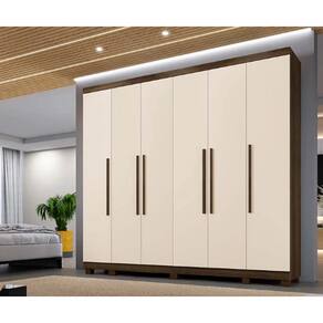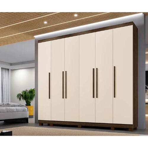 Guarda Roupa Casal Atlanta O Guarda Roupa Atlanta é um daqueles móveis feitos para organizar e embelezar o ambiente. Ele tem compartimentos que ajudam a arrumar o quarto com facilidade. Com visual elegante, o móvel chama a atenção. A primeira vista, o que costuma impressionar é seu estilo moderno, que se destaca pela simplicidade das linhas retas e as portas sem detalhes, com puxadores em madeira. Medidas do Produto Montado:Altura: 242 cmLargura: 270 cmProfundidade: 54 cm.Características:- Produzido em mdf. Esse material é durável contra a ação do tempo e firme contra a envergadura por peso;- Corrediças telescópicas nas gavetas que permitem um deslize amplo e suave no movimento de puxar;- Possui cabideiro em alumínio,- Espaço reservado para roupas longas;- Prateleiras espaçosas para organização de camisas, calças, acessórios e até o jogo de cama;- 6 Gavetas;- Puxadores internos;- Puxadores amadeirados; - Kit de pé incluso- Necessário Montagem: Sim.Recomendações de uso, manutenção e limpeza: Pano levemente umedecido com sabão neutro.Informações importantes:- Não responsabilizamos pela montagem e instalação dos produtos. A montagem deve ser realizada por um profissional, conforme as instruções do manual do produto. A responsabilidade da montagem é do consumidor.- Os Objetos que ambientam as imagens não acompanham o produto.- Pode haver alguma diferença de tonalidade entre a foto e o produto, devido ao tratamento de imagens e a calibração do seu monitor ou dispositivo.- A entrega é realizada por transportadora, não nos responsabilizamos, no ato da entrega por desmontagens, subir escadas/elevadores ou transporte por guincho para apartamentos. Eventuais despesas são de responsabilidade do consumidor.- Antes de comprar o seu produto verifique as medidas e o local onde pretende instalar.