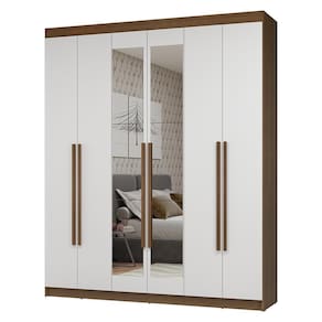 - Um (1) Guarda-Roupa com seis (6) portas batentes, sendo quatro (4) de madeira e duas (2) com espelho