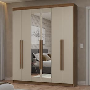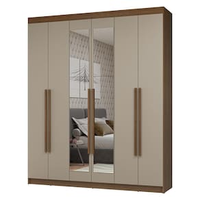 - Um (1) Guarda-Roupa com seis (6) portas batentes, sendo quatro (4) de madeira e duas (2) com espelho
