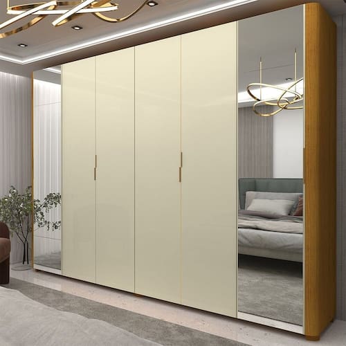 O Roupeiro Innova é um móvel moderno e elegante. Possui 6 portas, com opção de kit espelho. Seus cantos curvos destacam seu visual moderno e transmitem aconchego a decoração. Seu interior foi pensado em facilitar a organização, possui gavetas espaçosas com corrediças telescópicas, ampla quantidade de prateleiras e tubos cabideiros. Este é o roupeiro perfeito para transformar seu quarto. Acabamento da Prateleira: Pintura UV Escala de Brilho da Prateleira: Brilhante Possui Cabideiros: Sim Acabamento da Gaveta: Pintura UV Escala de Brilho da Gaveta: Brilhante Possui Organizador de Gaveta: Não Acabamento da Porta: Pintura UV Escala de Brilho da Porta: Semi-Fosco Acabamento dos Pés: Pintura Altura do Espelho 01: 157 cm Altura do Espelho 02: 157 cm Altura do Espelho 03: 38,9 cm Altura do Espelho 04: 38,9 cm Altura do Espelho 05: 38,9 cm Altura do Espelho 06: 38,9 cm Altura dos Pés: 5 cm Altura Máxima dos Pés: 5.0000 Ambiente Principal: Quarto codigo_ean: 7909903851388 Complexidade da Montagem: Alta: deve ser montado por um montador especializado Cor: Naturale/Off White Cor do Produto: Naturale/Off White Cor Flex: Não Cor Interna: Off White Escala de Brilho: Semi-Fosco Espessura do Espelho: 3 mm Fita Integrada: Não Formato do Espelho: Retangular Gaveta com Chave: Não Informações Complementares: Iluminação por fita LED. Itens Inclusos: 01 unidade do produto + 01 manual de montagem Largura do Espelho 01: 38,9 cm Largura do Espelho 02: 38,9 cm Largura do Espelho 03: 38,9 cm Largura do Espelho 04: 38,9 cm Largura do Espelho 05: 38,9 cm Largura do Espelho 06: 38,9 cm Linha ou Coleção: Innova Manual de Especificação Técnica: https://product-hub-prd.madeiramadeira.com.br/929222/documents/aaf4f3e2-0d23-4756-b820-fea139555b19rpcpescledmanualdemontagem.pdf Manual de Montagem e Instalação: https://product-hub-prd.madeiramadeira.com.br/929222/documents/4646d09a-febe-45b2-a906-b1df6c6d33b6rpcpescledmanualdemontagem.pdf Material da Gaveta: MDF Material da Porta: MDF Material da Prateleira: MDF Material dos Pés: Madeira Maciça Material Principal: MDF modular: Não Montagem Flex: Não Necessita Montagem: Sim Origem do Produto: Nacional Peso: 244 kg Peso Máximo por Gaveta: 5 kg Peso Máximo por Prateleira: 5 kg Possui Calceiros: 02 Possui Espaço para Vestidos Longos: Sim Possui Espelho: Sim Possui Espelho Interno: Não Possui Ganchos: Não Possui Painel de TV: Não Possui Pés: 08 Possui Portas: Sim Possui Prateleiras: Sim Possui Sapateira: Não Produto Montado: Sim Quantidade de Espelho: 06 Espelhos com Tamanhos Diferentes Quantidade de Gavetas: 04 Gavetas Quantidade de Prateleiras: 08 Prateleiras Recomendações de Uso, Manutenção e Limpeza: A limpeza do produto deve ser feita por meio do uso de um pano, umedecido com água, e um pano seco. É importante para fazer a limpeza do móvel nunca utilizar produtos químicos ou abrasivos. Para conservar o padrão de qualidade dos produtos Gelius, nunca arraste um móvel se este estiver cheio. Nunca puxe o móvel de frente para você, pois ele pode balançar e provocar acidentes. Sapatas Niveladoras: Não Sistema de Montagem: Convencional: parafusos, pregos, cavilhas, etc. Suporta Até (kg): 150 kg Tipo de Corrediça da Gaveta: Metálica Telescópica Tipo de Dobradiça/Corrediça da Porta: Aço Tipo de Fixação do Espelho: Fita Dupla Face Tipo de Gaveta: Interna Tipo de Guarda-Roupa: Casal Tipo de Madeira Maciça dos Pés: Pinus Tipo de Puxador da Gaveta: Não Possui Tipo de Puxador da Porta: Externo