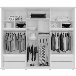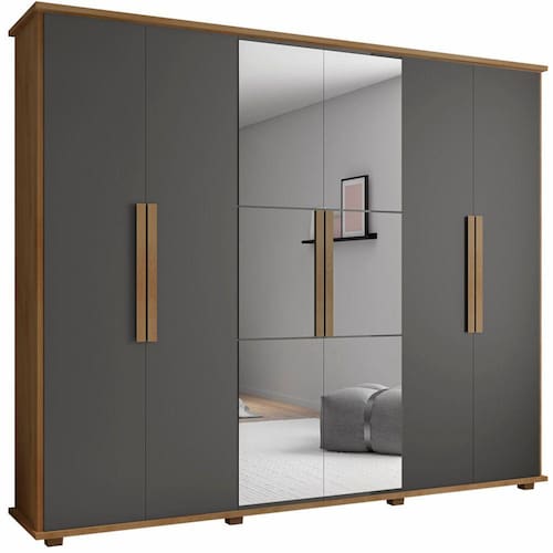 Descrição: Um fantástico Guarda Roupas para compor o ambiente e a decoração do seu quarto! Amplo e completo, o guarda-roupa Canadá é ideal para seu quarto. Possui 04 gavetas com corrediças telescópicas, calceiro e cabideiro em alumínio, prateleiras, maleiros, 2 portas com espelho de corpo todo. Além de tudo isto, ele tem o visual perfeito para fazer parte do seu lar. Incrível, né? Aproveite!