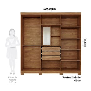 O Guarda Roupa Paraty é 100% MDF e agrega elegância ao seu ambiente, com divisórias internas pensadas para uma perfeita organização e uso compartilhado. Portas com puxadores em ABS. Na parte central contém 1 porta giratória com espelho e prateleiras que fazem a função de uma penteadeira. Suas 3 gavetas internas possuem corrediças metálicas telescópicas, os cabideiros são em alumínio com suportes metálicos. Acompanha pés com 5cm de altura, facilitando a limpeza! Acabamento da Prateleira: Pintura UV Escala de Brilho da Prateleira: Semi-Brilho Possui Cabideiros: Sim Acabamento da Gaveta: Pintura UV Escala de Brilho da Gaveta: Semi-Brilho Possui Organizador de Gaveta: Não Acabamento da Porta: Pintura UV Escala de Brilho da Porta: Semi-Brilho Material do Puxador da Porta: Plástico Altura do Espelho: 65 cm Altura dos Pés: 5 cm Altura Máxima dos Pés: 5.0000 Ambiente Principal: Quarto codigo_ean: 7900288343826 Complexidade da Montagem: Alta: deve ser montado por um montador especializado Cor: Cinamomo/Off White Cor do Produto: Cinamomo/Off White Cor Interna: Cinamomo Escala de Brilho: Semi-Brilho Espessura da Estrutura (mm): 12 mm Espessura das Portas (mm): 12 mm Espessura das Prateleiras (mm): 12 mm Espessura do Espelho: 3 mm Espessura do Fundo (mm): 2,5 mm Espessura do Fundo das Gavetas (mm): 2,5 mm Formato do Espelho: Retangular Gaveta com Chave: Não Guarda-Roupa Suporta Até (kg): 80 kg Informações Complementares: Estrutura em 12mm e 15mm. Espelho interno giratório. Itens Inclusos: 1 Guarda-roupas, kit ferragens e manual de montagem Largura do Espelho: 25 cm Linha ou Coleção: Paraty Manual de Montagem e Instalação: https://product-hub-prd.madeiramadeira.com.br/160398021/documents/107052c7-44eb-4520-89fa-49148aabb3f53387635368017708396455858.pdf Marca: Espresso Móveis Material da Gaveta: MDF Material da Porta: MDF Material da Prateleira: MDF Material dos Pés: ABS Material Principal: MDF modular: Não Necessita Montagem: Sim Origem do Produto: Nacional Peso: 123,8 kg Peso Máximo por Gaveta: 5 kg Peso Máximo por Prateleira: 5 kg Possui Calceiros: 01 Possui Espelho: Sim Possui Espelho Interno: Sim Possui Pés: 08 Possui Portas: Sim Possui Prateleiras: Sim Possui Sapateira: Não Produto Montado: Sim Quantidade de Cabideiros: 01 Cabideiro Quantidade de Espelho: 01 Quantidade de Gavetas: 03 Gavetas Quantidade de Portas com Espelhos: Nenhuma Quantidade de Prateleiras: 07 Prateleiras Recomendações de Uso, Manutenção e Limpeza: Para limpeza utilize somente pano limpo e macio, ligeiramente umidecido em água (apenas o bastante para remover a poeira), seguido de um pano seco. Sistema de Montagem: Parafusos altoatarraxantes, conjuntos minifix, cavilha madeira, acessórios plásticos/metálicos Suporta Até (kg): 80 kg Tipo de Corrediça da Gaveta: Metálica Telescópica Tipo de Dobradiça/Corrediça da Porta: Metálica Tipo de Fixação do Espelho: Parafusos Tipo de Gaveta: Interna Tipo de Guarda-Roupa: Casal Tipo de Puxador da Gaveta: Não Possui Tipo de Puxador da Porta: Externo