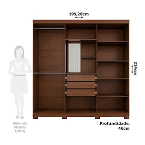 O Guarda Roupa Paraty é 100% MDF e agrega elegância ao seu ambiente, com divisórias internas pensadas para uma perfeita organização e uso compartilhado. Portas com puxadores em ABS. Na parte central contém 1 porta giratória com espelho e prateleiras que fazem a função de uma penteadeira. Suas 3 gavetas internas possuem corrediças metálicas telescópicas, os cabideiros são em alumínio com suportes metálicos. Acompanha pés com 5cm de altura, facilitando a limpeza! Acabamento da Prateleira: Pintura UV Escala de Brilho da Prateleira: Semi-Brilho Possui Cabideiros: Sim Acabamento da Gaveta: Pintura UV Escala de Brilho da Gaveta: Semi-Brilho Possui Organizador de Gaveta: Não Acabamento da Porta: Pintura UV Escala de Brilho da Porta: Semi-Brilho Material do Puxador da Porta: Plástico Altura do Espelho: 65 cm Altura dos Pés: 5 cm Altura Máxima dos Pés: 5.0000 Ambiente Principal: Quarto codigo_ean: 7900288343857 Complexidade da Montagem: Alta: deve ser montado por um montador especializado Cor: Jequitiba Cor do Produto: Jequitiba Cor Interna: Jequitibá Escala de Brilho: Semi-Brilho Espessura da Estrutura (mm): 12 mm Espessura das Portas (mm): 12 mm Espessura das Prateleiras (mm): 12 mm Espessura do Espelho: 3 mm Espessura do Fundo (mm): 2,5 mm Espessura do Fundo das Gavetas (mm): 2,5 mm Formato do Espelho: Retangular Gaveta com Chave: Não Guarda-Roupa Suporta Até (kg): 80 kg Informações Complementares: Estrutura em 12mm e 15mm. Espelho interno giratório. Itens Inclusos: 1 Guarda-roupas, kit ferragens e manual de montagem Largura do Espelho: 25 cm Linha ou Coleção: Paraty Manual de Montagem e Instalação: https://product-hub-prd.madeiramadeira.com.br/532788300/documents/e7b53bff-f90b-49b8-9011-7a775dce7ff23387663368017708397929548.pdf Marca: Espresso Móveis Material da Gaveta: MDF Material da Porta: MDF Material da Prateleira: MDF Material dos Pés: ABS Material Principal: MDF modular: Não Necessita Montagem: Sim Origem do Produto: Nacional Peso: 123,8 kg Peso Máximo por Gaveta: 5 kg Peso Máximo por Prateleira: 5 kg Possui Calceiros: 01 Possui Espelho: Sim Possui Espelho Interno: Sim Possui Pés: 08 Possui Portas: Sim Possui Prateleiras: Sim Possui Sapateira: Não Produto Montado: Sim Quantidade de Cabideiros: 01 Cabideiro Quantidade de Espelho: 01 Quantidade de Gavetas: 03 Gavetas Quantidade de Portas com Espelhos: Nenhuma Quantidade de Prateleiras: 07 Prateleiras Recomendações de Uso, Manutenção e Limpeza: Para limpeza utilize somente pano limpo e macio, ligeiramente umidecido em água (apenas o bastante para remover a poeira), seguido de um pano seco. Sistema de Montagem: Parafusos altoatarraxantes, conjuntos minifix, cavilha madeira, acessórios plásticos/metálicos Suporta Até (kg): 80 kg Tipo de Corrediça da Gaveta: Metálica Telescópica Tipo de Dobradiça/Corrediça da Porta: Metálica Tipo de Fixação do Espelho: Parafusos Tipo de Gaveta: Interna Tipo de Guarda-Roupa: Casal Tipo de Puxador da Gaveta: Não Possui Tipo de Puxador da Porta: Externo