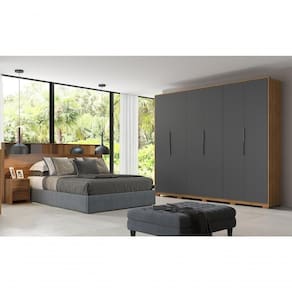 Guarda Roupa Grande Para Casal Atrice com Pes, com qualidade em todos os detalhes, espaçoso, ele possui os compartimentos ideais para acomodar todas as suas coisas, desde as roupas até os sapatos e acessórios, possui estrutura em MDP de 12mm e 15mm, acabamento em pintura UV (Fosco). Equipado com 06 portas articuladas com dobradiças metálicas, os puxadores perfil em alumínio possuem sutileza no desenho e são modernos e discretos, conta com 06 gavetas internas com corrediças telescópicas que garantem um fechamento super suave, prateleiras internas com muito espaço para suas roupas, maleiros espaçoso, cabideiros metálicos sendo 1 para roupas longas, espaço ELE/ELA, nichos inferiores ideiais para sapatos, o visual moderno oferece sofisticação e bom gosto para a decoração do seu espaço, acompanha os pés e kit de ferragens de qualidade garantindo durabilidade e resistência. Este móvel chegará em sua casa separado em 07 volumes.