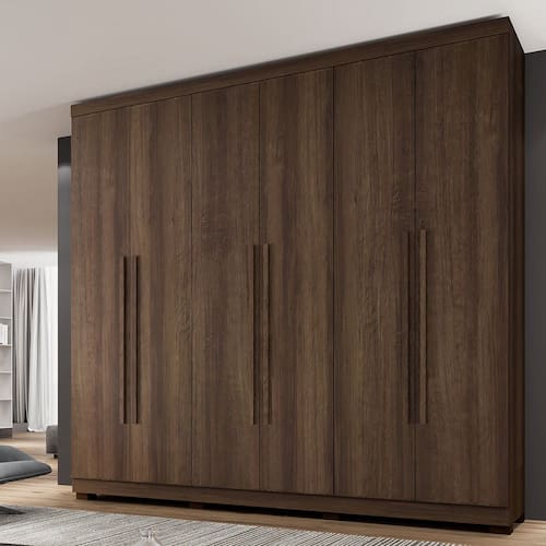 Características: Estrutura em MDP 15mm 6 Portas Prateleiras 4 gavetas Corrediças telescópicas Puxadores na tonalidade do produto Espaço para sapatos Pés Maleiro