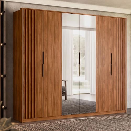 Guarda Roupa Casal 6 Portas Com Ripado e Com Espelho 6 Gavetas Equador Demóbile