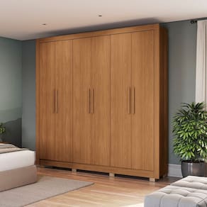 Seu quarto completo com o Roupeiro CB4M569 da Kappesberg. Com seis portas, são 2,23m de altura, 2,32m de largura e 47cm de profundidade, produzido em MDP de 15mm, garantindo robustez, firmeza e qualidade. Com até sete camadas de pintura na cor canela e acabamento touch, remetendo aos tons da natureza, dará destaque ao seu espaço. O diferencial são os puxadores em madeira e a moldura em torno de todo o roupeiro, deixando-o mais sofisticado. Na parte interna, os nichos são ideais para guardar calçados e roupas dobradas. Os cabideiros, metálicos e com suporte interno, garantem espaço para casacos e vestidos. Nas gavetas, com corrediças metálicas, você organiza acessórios e peças menores. Com pés em polipropileno, é a escolha perfeita para quem gosta de praticidade. Acabamento da Prateleira: Pintura UV Escala de Brilho da Prateleira: Fosco Possui Cabideiros: Sim Acabamento da Gaveta: Pintura UV Escala de Brilho da Gaveta: Fosco Possui Organizador de Gaveta: Não Acabamento da Porta: Pintura UV Escala de Brilho da Porta: Fosco Material do Puxador da Porta: Madeira Maciça Acabamento dos Pés: Impressão Altura dos Pés: 5 cm Altura Máxima dos Pés: 5.0000 Ambiente Principal: Quarto codigo_ean: 7900288156297 Complexidade da Montagem: Média: pode ser montado por mais de uma pessoa e/ou necessite de maior conhecimento para montagem Cor: Canela Cor da Porta: Marrom Cor do Produto: Canela Cor do Puxador: Marrom Escala de Brilho: Fosco Espessura da Estrutura (mm): 15 mm Espessura das Portas (mm): 15 mm Espessura das Prateleiras (mm): 15 mm Espessura do Fundo (mm): 3 mm Espessura do Fundo das Gavetas (mm): 3 mm Gaveta com Chave: Não Guarda-Roupa Suporta Até (kg): 80 kg Itens Inclusos: 1 Guarda-Roupa, Ferragens e Manual de Montagem Linha ou Coleção: Dormitório Open Manual de Montagem e Instalação: https://product-hub-prd.madeiramadeira.com.br/849702313/documents/19167c92-6122-465e-8d89-d14bdd60dfcc2942733544517478387238155.pdf Marca: Kappesberg Material da Gaveta: MDP Material da Porta: MDP Material da Prateleira: MDP Material dos Pés: Polipropileno Material Principal: MDP modular: Não Necessita Montagem: Sim Nicho com Cabideiro: Não Origem do Produto: Nacional Peso: 144,37 kg Peso Máximo por Gaveta: 6 kg Peso Máximo por Prateleira: 7 kg Porta Janelada: Não Possui Calceiros: 01 Possui Espelho: Não Possui Pés: 08 Possui Portas: Sim Possui Prateleiras: Sim Produto Montado: Sim Quantidade de Cabideiros: 02 Cabideiros Quantidade de Gavetas: 03 Gavetas Quantidade de Prateleiras: 08 Prateleiras Recomendações de Uso, Manutenção e Limpeza: Use um pano limpo e ligeiramente umedecido em água ou álcool (recomendamos álcool etílico hidratado). Logo após, seque a superfície com um pano seco e macio. Em grandes superfícies limpe pequenas áreas de cada vez, trabalhando de baixo para cima. Sapatas Niveladoras: Não Sistema de Montagem: Parafuso Philips e Minifix Tipo de Corrediça da Gaveta: Metálica Simples Tipo de Dobradiça/Corrediça da Porta: Metálica Tipo de Gaveta: Interna Tipo de Guarda-Roupa: Casal Tipo de Puxador da Gaveta: Abertura por Fecho Toque Tipo de Puxador da Porta: Externo