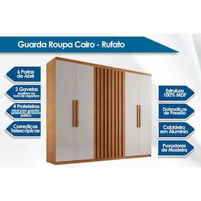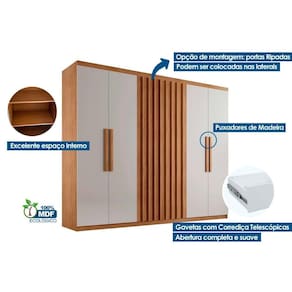 Guarda Roupa Casal 6 Portas e 2 Gavetas Cairo Naturale - Rufato