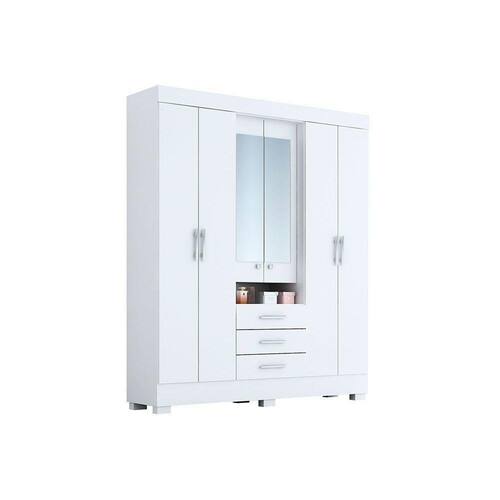 Guarda Roupa Solteiro Débora 6 Portas e 3 Gavetas c/ Espelho Branco - ACP