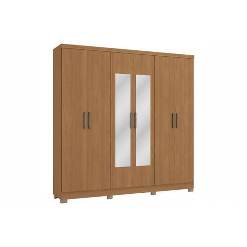 Guarda Roupa Casal 6 Portas E 3 Gavetas C/ Espelho E Pés Cbj559 Canela - Kappesberg