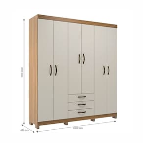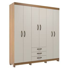 Guarda-roupa Casal 6 Portas e 3 Gavetas Ipê/Cristalo - Bege