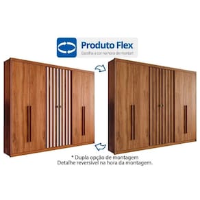 Material do Calceiro - Calceiro Metálico Tipo de Cabideiro - Aéreo Material dos Cabideiros - Cabideira Metálico Material das Portas - Portas em MDP Tipo de Dobradiças - Dobradiças Metálicas Diferenciais das Portas - Portas Ripadas Quantidade de Portas - 6 Portas de Abrir Material das Gavetas - Gavetas em MDP Tipo de Corrediça - c/ Corrediças Metálicas Quantidade de Gavetas - 3 Material das Prateleiras - Prateleiras em MDP Quantidade de Prateleiras - 9