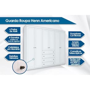 Guarda Roupa Casal 6 Portas e 4 Gavetas Americano Branco - Henn