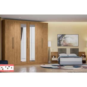 Guarda Roupa Casal 6 Portas e 4 Gavetas c/ Espelho e Pés H555 Freijó - Kappesberg