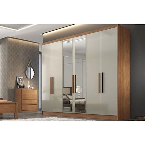 Guarda Roupa Casal 6 Portas e 4 Gavetas c/ Espelho Rizon/Linea Freijo Cumaru c/ Fendi - Horizonte