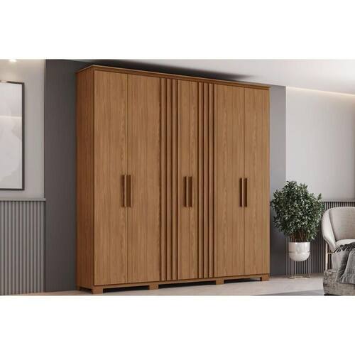 Material dos Cabideiros - Cabideira Metálico Tipo de Porta do Guarda-Roupa - Portas de Bater Material das Portas - Portas em MDP Tipo de Dobradiças - Dobradiças Metálicas Diferenciais das Portas - Portas com Detalhe Ripado Quantidade de Portas - 6 Portas de Abrir Material das Gavetas - Gavetas em MDP Tipo de Corrediça - c/ Corrediças Telescópicas Quantidade de Gavetas - 4 Gavetas Tipo dos Pés - ABS/PVC Quantidade de Pés - 8 pés Material das Prateleiras - Prateleiras em MDP Quantidade de Prateleiras - 6