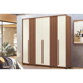 Material do Calceiro - Calceiro Metálico Material dos Cabideiros - Cabideira Metálico Tipo de Porta do Guarda-Roupa - Portas de Bater Material das Portas - Portas em MDP Tipo de Dobradiças - Dobradiça Slowmotion Diferenciais das Portas - Portas Ripadas Quantidade de Portas - 6 Portas de Abrir Tipo de Espelho - Sem Espelho Tipo de Corrediça - c/ Corrediças Telescópicas Quantidade de Gavetas - 4 Gavetas Material de Estrutura Fundo Gaveta - Em HDF Quantidade de Pés - 8 pés