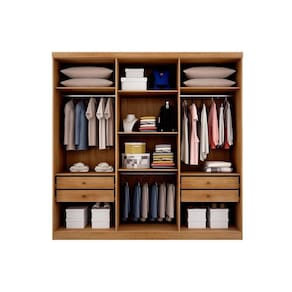 Material do Calceiro - Calceiro Metálico Tipo de Cabideiro - Aéreo Material dos Cabideiros - Cabideira Metálico Tipo de Porta do Guarda-Roupa - Portas de Bater Material das Portas - Portas em MDF Tipo de Dobradiças - Dobradiças de 35mm com Amortecimento Quantidade de Portas - 6 Portas de Abrir Material das Gavetas - Gavetas em MDF Tipo de Corrediça - c/ Corrediças Telescópicas Quantidade de Gavetas - 4 Gavetas Material das Prateleiras - Prateleiras em MDF Quantidade de Prateleiras - 5