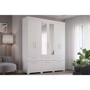 Guarda Roupa Casal 6 Portas e 5 Gavetas c/ Espelho Porto Branco - Panan
