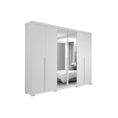 Guarda Roupa Casal 6 Portas e 6 Gavetas c/ Espelho e Pés Guarapari Branco - Panan