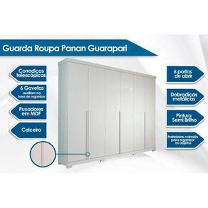 Guarda Roupa Casal 6 Portas e 6 Gavetas c/ Pés Guarapari Cinamomo - Panan
