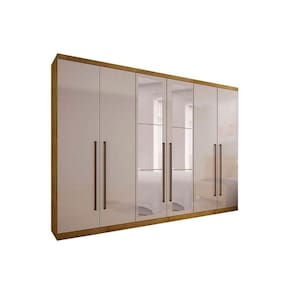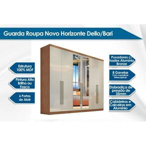 Guarda Roupa Casal 6 Portas e 8 Gavetas c/ Espelho Dello/Trento Cacau Canela/Fendi - Novo Horizonte